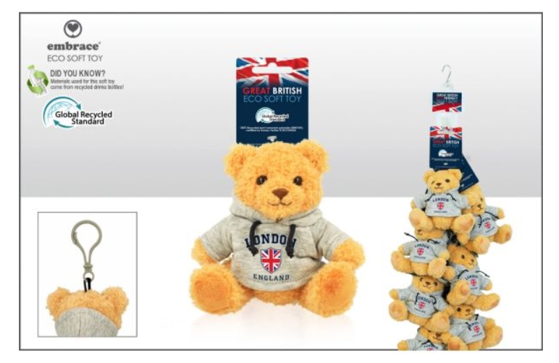 London Grey Hoodie Soft Toy 9.5cm with clip