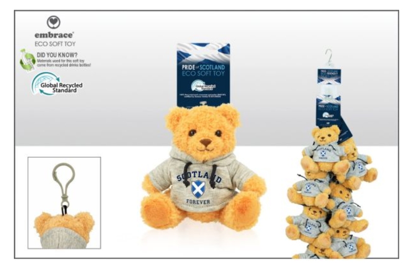 Scotland Bear Grey Hood Soft Toy 9.5cm with clip